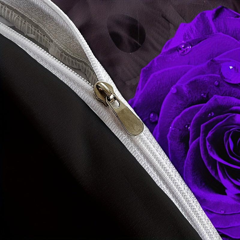 Bring a bold and stylish vibe to your bedroom, guest room, or dorm with our Purple Rose Skull Duvet Cover Set. Featuring a unique purple rose and skull pattern, this set is made from soft, breathable polyester, ensuring a comfortable and restful sleep. Perfect for Halloween or adding an edgy touch to your space, it includes a duvet cover and two pillowcases.