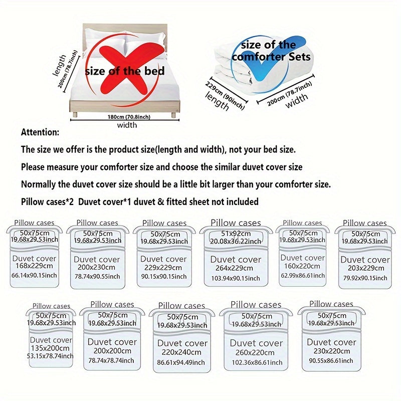 - Complete Set: Includes 1 duvet cover and 2 pillowcases, without the core, for an easy bedding update.